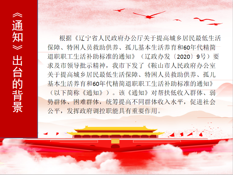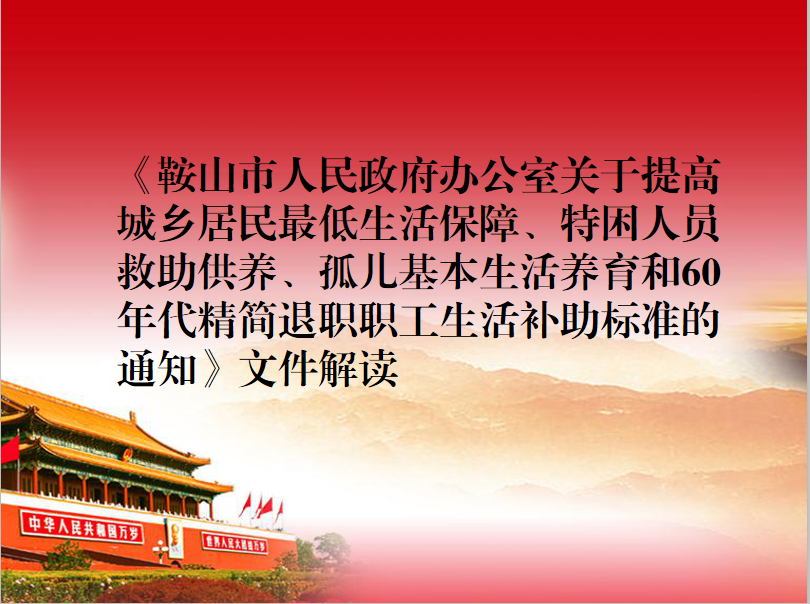 鞍山市人民政府办公室关于提高城乡居民最低生活保障、特困人员救助供养、孤儿基本生活养育和60年代精简退职职工生活补助标准的完美365体育ios下载_bt365官网是多少_365bet安卓中文客户端